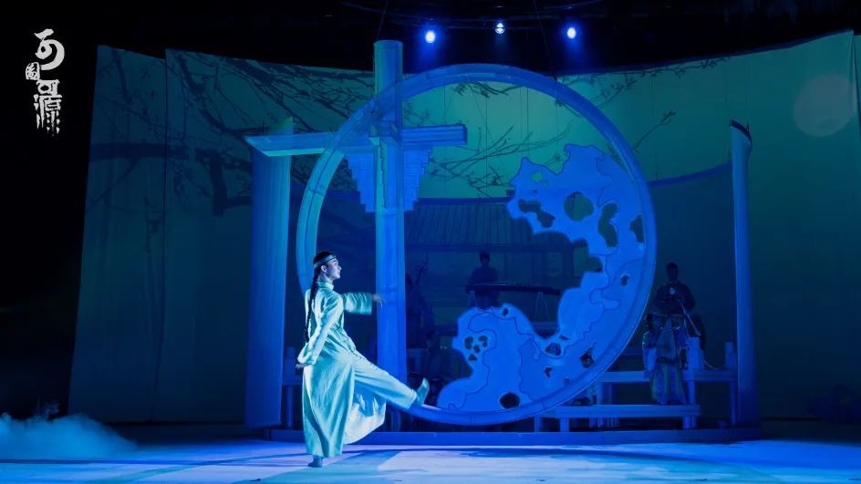 实验国乐剧《可园可源》在舞美设计上,林芷羽导演表示,灵感是来源于“可圆”与“可源”中的两个“圆,源”字,再提取岭南可圆与十香园的建筑元素共同设计的舞台。这次的初衷是设计一个具有极简中式风格的舞台装置,怎么在有限的空间内去呈现岭南园林。经过多番设想,不断地和团队进行沟通调整设计,最终确定以圆心为核心,层层展开的四层圆形舞台空间,营造出一种层次分明,为整个舞台增添了一份诗意。他们与舞台融为一体,让每一幕都成为一幅精美的画卷缓缓展开在观众面前。