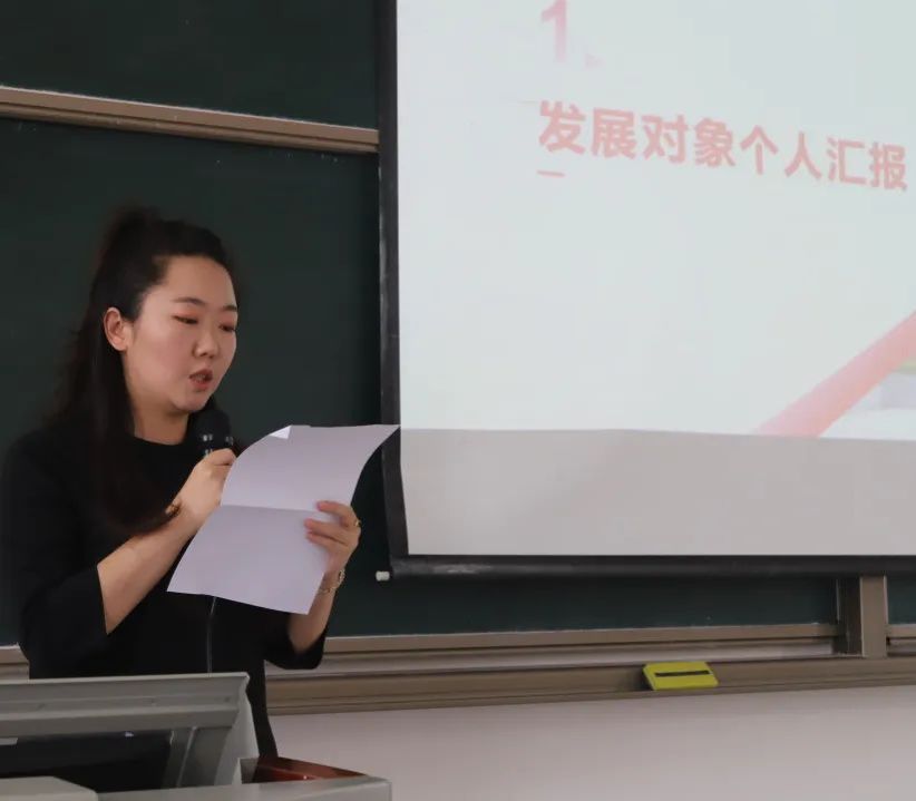 会议第二部分,本次会议研究讨论了接收汪敬雯为预备党员问题。汪敬雯从思想、工作、学习及生活等多个方面向党组织汇报自己在发展对象期间的基本情况,展现了自己坚定的入党决心和热切的期望。