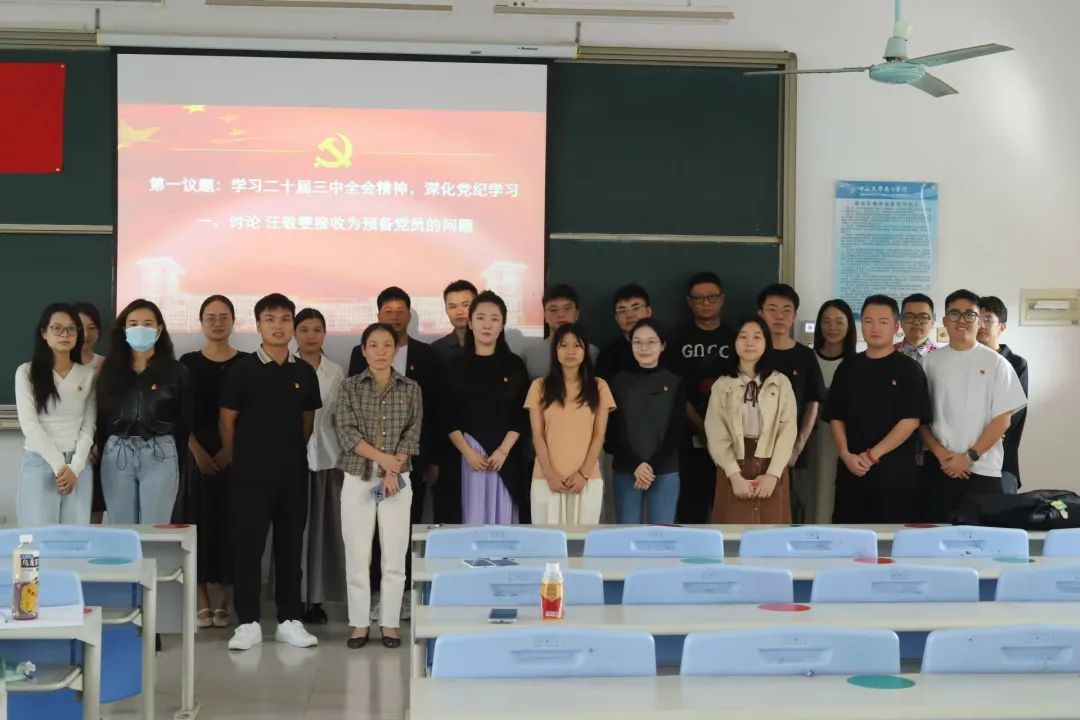 紧接着,张巍书记和系教工党支部副书记李钊锋对汪敬雯同志的考察期情况进行介绍,肯定了汪敬雯同志在发展对象期间各方面的突出表现。经参会正式党员讨论研究并结合党内外群众意见,支部大会通过无记名投票的方式表决,最终同意接收汪敬雯为预备党员。张巍书记带领汪敬雯同志面向党旗进行庄严的入党宣誓,汪敬雯同志表示自己将恪守入党诺言,牢记全心全意为人民服务的宗旨。