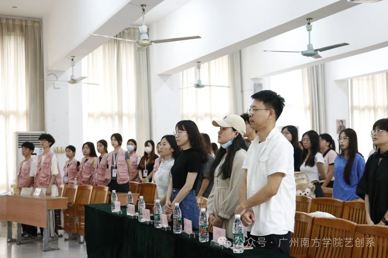 出席本次大会的嘉宾分别是艺创系学工办主任崔璨老师、艺创系党支部书记张妮老师、艺创系团委书记李淑娜老师、艺创系党支部副书记陈娜老师、艺创系辅导员廖湘老师。在主持人温静宁的带领下,嘉宾老师与青马学员们起身共唱团歌。