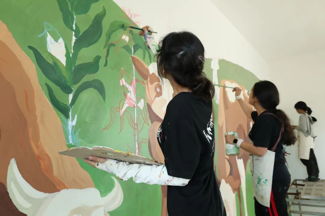 在东冠村,队员们不畏酷暑高温,顶着烈日,走访乡村,深入挖掘乡村历史文化与产业结构,依托专业知识,设计出独属于东冠村的特色墙绘。他们纷纷大展身手,手持画笔,精心勾勒每一个线条,用心填充每一块色彩,从构思到草图,从打底到上色,每一个环节都倾注了大量的心血和汗水。经过9天的努力,15名队员共绘制了20余幅墙画,这些墙画不仅为乡村环境增色添彩,更成为了东冠村一道独特的产业风景线和崭新的文化名片。