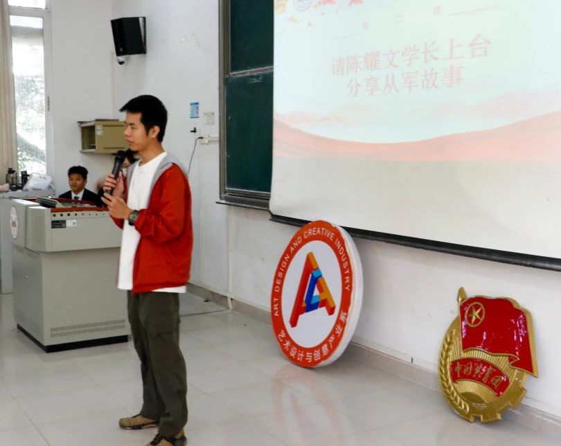 作为本次分享会的核心环节,陈耀文学长结合自身丰富的军旅经历,向在场师生们生动讲述了他的军营生活。他强调,作为一名军人,过硬的身体素质、顽强的心理素质以及严谨的态度是必不可少的。他介绍了军旅日常训练的内容,包括晨练、战术演习和部队巡逻等项目,还特别分享了边疆驻守时面临的挑战,如高海拔环境下的严格训练和冬季寒冷条件下保持的高度警惕性,展现了军人保家卫国的坚韧不拔精神。