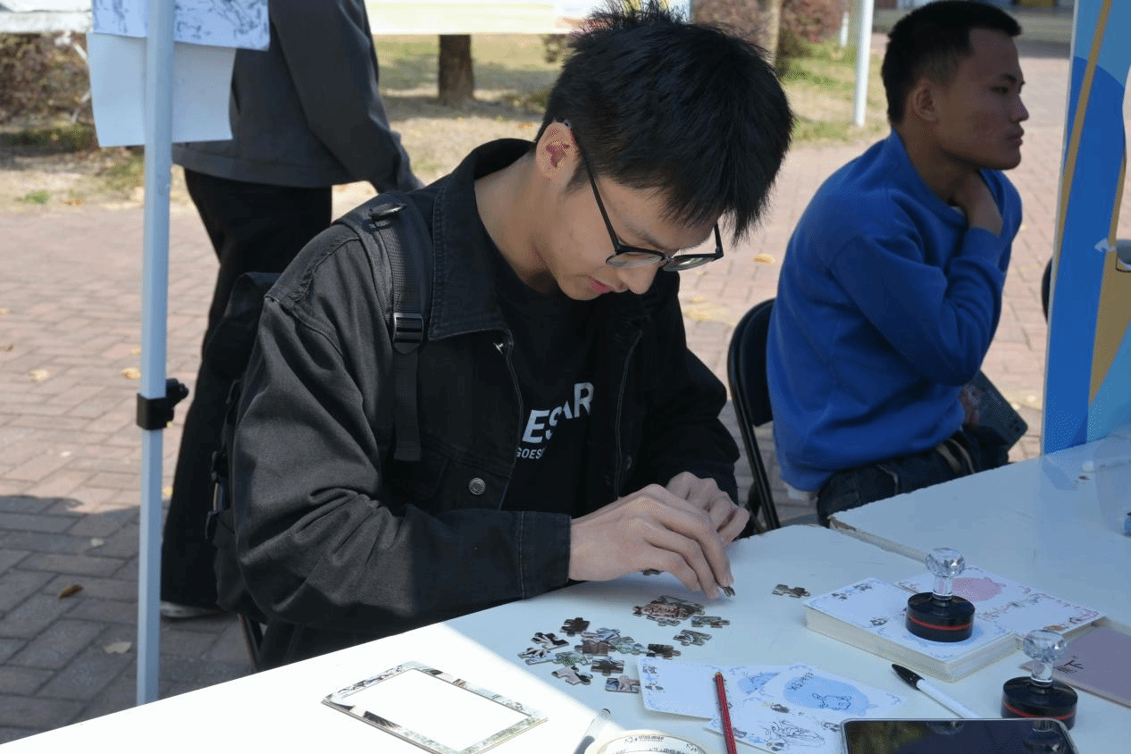 参与者们通过转动答题转盘了解雷锋的生平事迹,在限时拼图活动中重温经典的雷锋故事,还以协作书写的方式表达自己的实践承诺,将理论学习逐渐转化为实际行动的思考。在这个过程中,每个人的文字相互叠加,汇聚成一篇充满青春力量与激情的行动宣言。