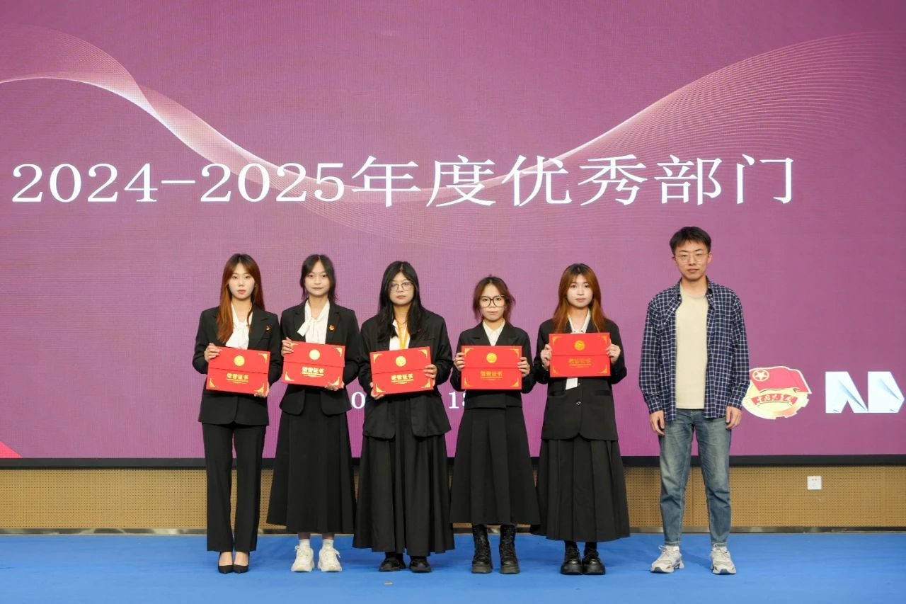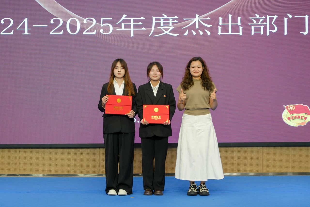 表彰环节中,陈婷老师、李淑娜老师、邹清朗老师和陈娜老师为本年度表现突出的优秀部门与队伍颁发荣誉。这一表彰不仅是对他们勤勉付出的充分肯定,更是对他们卓越成绩的真诚礼赞,彰显了公司对团学工作的高度重视与高度认可。