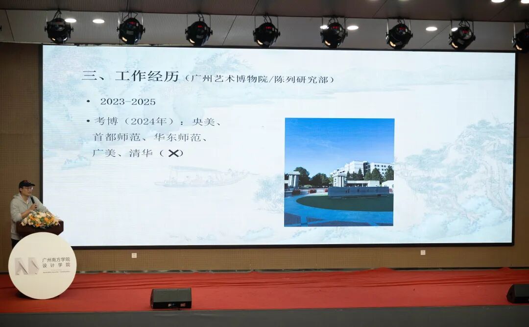 讲座伊始,郑湘榕学长首先感恩母校师长的悉心培育,随后结合自身在广州艺术博物院的工作经历,围绕学业选择、职业规划等核心问题拆解实用方法。他鼓励师弟师妹们坚守热爱,在试错中积累经验,以脚踏实地的努力应对成长迷茫,为后辈明确了“目标导向+持续精进”的学习成长路径。