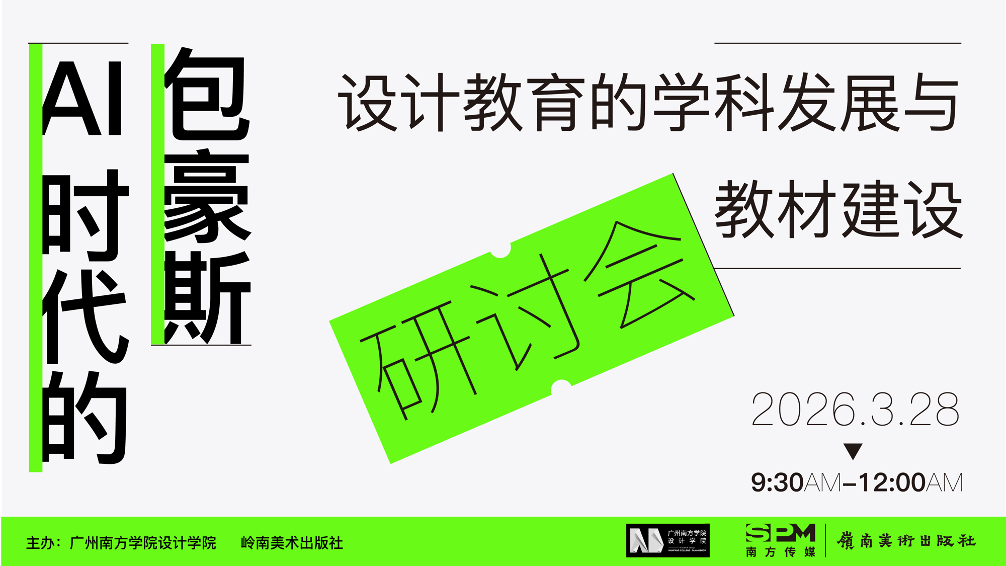 微雨润春,和风送暖。2026年3月28日上午,由太阳城集团、岭南美术出版社联合主办的“AI时代的包豪斯——设计教育的学科发展与教材建设研讨会”,在太阳城娱乐城中和楼第一会议室圆满召开。本次会议紧扣人工智能技术变革背景,聚焦设计教育转型路径与教材体系重构,汇聚高校设计领域专家、出版行业代表,共商新时代设计教育创新发展与产教融合大计。
