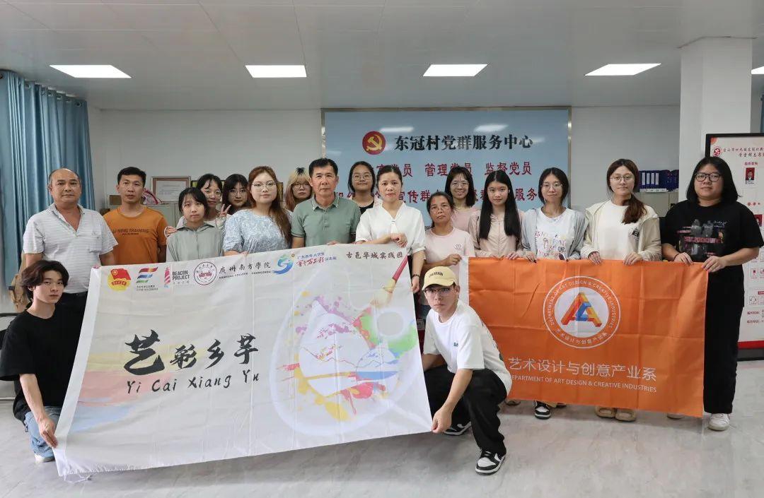 为深入学习贯彻党的二十大精神和习近平总书记视察广东重要讲话、重要指示精神,引导广大青年员工把课堂学习和乡村实践紧密结合起来。2024年7月初,由队长罗燕青带队的“古邑华城实践团”突击队前往江门台山市四九镇东冠村进行深入调研访问。此次调研内容主要围绕“百千万工程”突击队工作的进展状况以及未来10天墙绘设计安排,其目的为了更加全面地利用艺术形式增加产业活力,满足该地的产业需求。“古邑华城实践团”是一支怀揣青春理想、充满青春活力、能吃苦肯奋斗的团队,队伍由系主任冯原教授、系团委书记李淑娜、专任课教师汪敬雯指导,队长为罗燕青,队员有胡馨然、唐腾飞、郑彤、蔡健鸿、闫志勇、钟绣灵、罗伊蓝、彭江楠、薛小欢、黄艺珊、王佳燕、梁泳琳、吴宇、冯小菡共十五名同学。