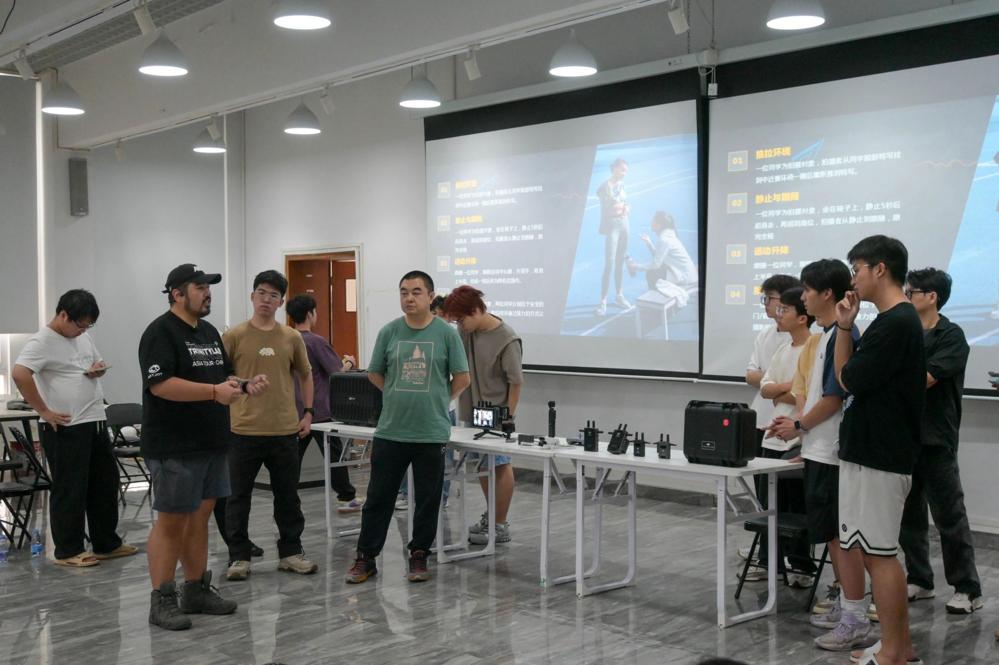 本次活动的核心亮点在于深度技术实操环节,张杨老师亲自指导员工体验大疆旗舰级专业设备:员工们不仅操作了全画幅专业电影机“如影4D”(DJI Ronin 4D),亲身感受其强大的8K影像能力及革命性的四轴稳定技术;同时也体验了便携智能相机“Pocket 3”(DJI Osmo Pocket 3),探索其小巧机身下卓越的一英寸传感器画质与智能跟随功能带来的便捷创作可能。张扬老师现场演示了设备的核心特性与拍摄技巧,并一对一指导员工进行构图设计、运镜手法及拍摄私聊的实践操作和讲解。 这种紧密结合“理论讲解”与“动手实践”的模式,有效帮助员工将课堂所学知识迅速转化为切实的影像创作能力。
