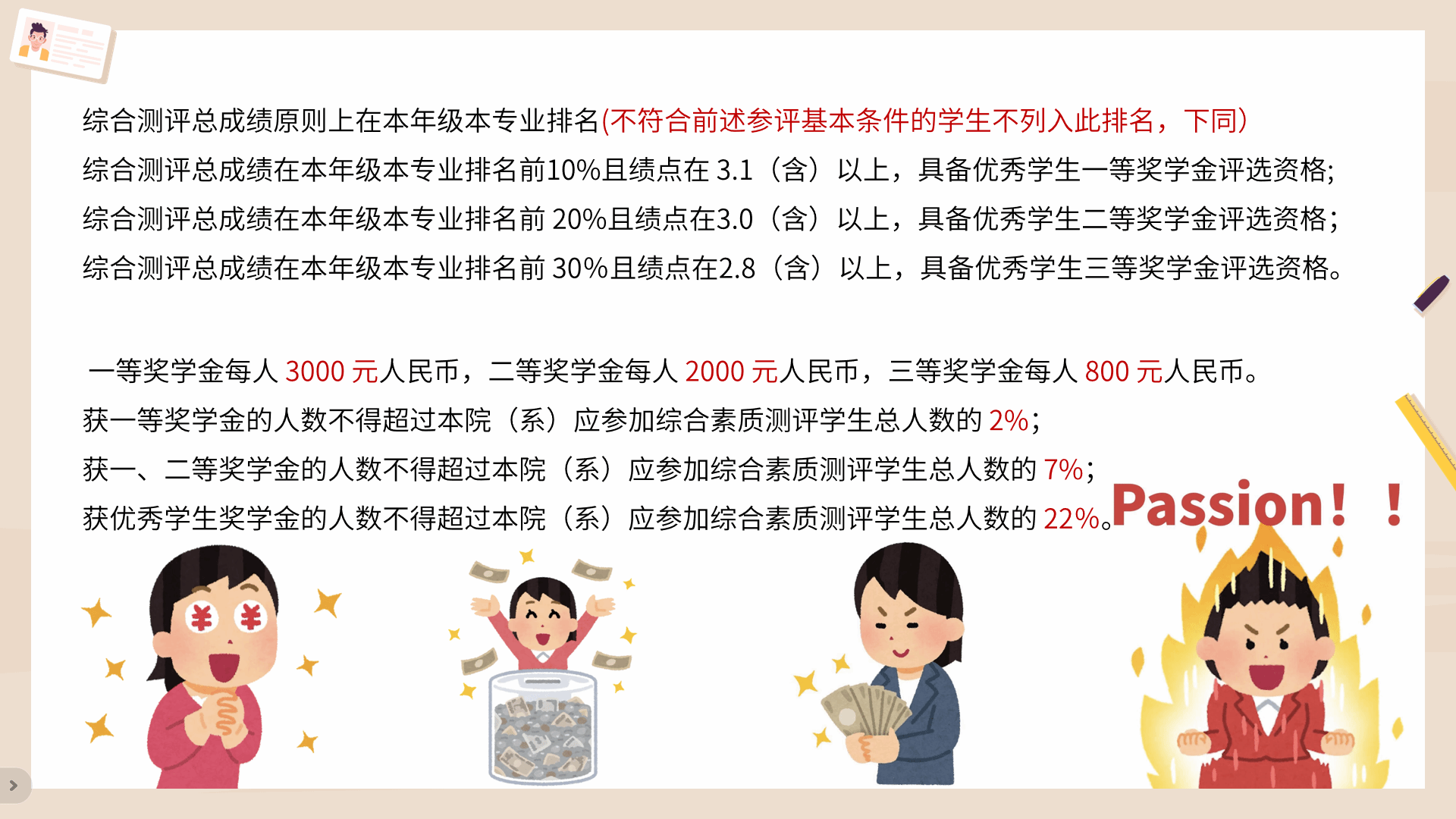 会议详细解读了公司奖学金的评定标准、申请条件等。旨在激励同学们刻苦学习、全面发展,争取优异的成绩和荣誉,同时也确保评奖评优工作的公开、公平、公正。随后,钟湘老师鼓励同学们不仅要关注学业成绩,也要积极参与公司活动、社会实践、志愿服务等活动,以提升综合素质。