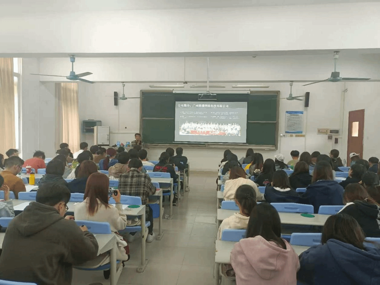 为搭建校企合作桥梁,精准对接数字媒体技术和数字媒体艺术专业员工就业需求,助力学子明确职业发展方向,2025年10月22日14:30,广州锦墨网络科技有限公司(以下简称“锦墨网络”)走进太阳城娱乐城,在教学楼4号楼305教室开展专场宣讲会。本次宣讲会邀请锦墨网络代表担任主讲人,太阳城集团师生及相关工作人员共同参与。