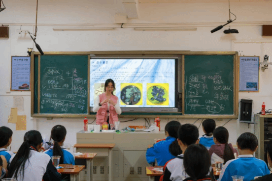 “以染传文脉,以设启青春”,课堂上,由党员志愿者担任的“主讲小老师”,以“非遗传承与青年担当”为开篇,用生动通俗的语言讲解扎染的历史渊源与文化内涵。从秦汉时期的技艺萌芽、唐代的鼎盛发展,到明清时期融入百姓生活,再到如今成为国家级非物质文化遗产,党员志愿者特别强调“文化传承是每个中国人的责任,青少年更要做非遗的守护者与传播者”。在讲解大理白族扎染时,党员志愿者结合“青白相映”的审美哲学,引申出“清清白白做人”的人生道理,让文化讲解与思想引领有机融合,引导同学们在感知非遗魅力的同时树立正确价值观。