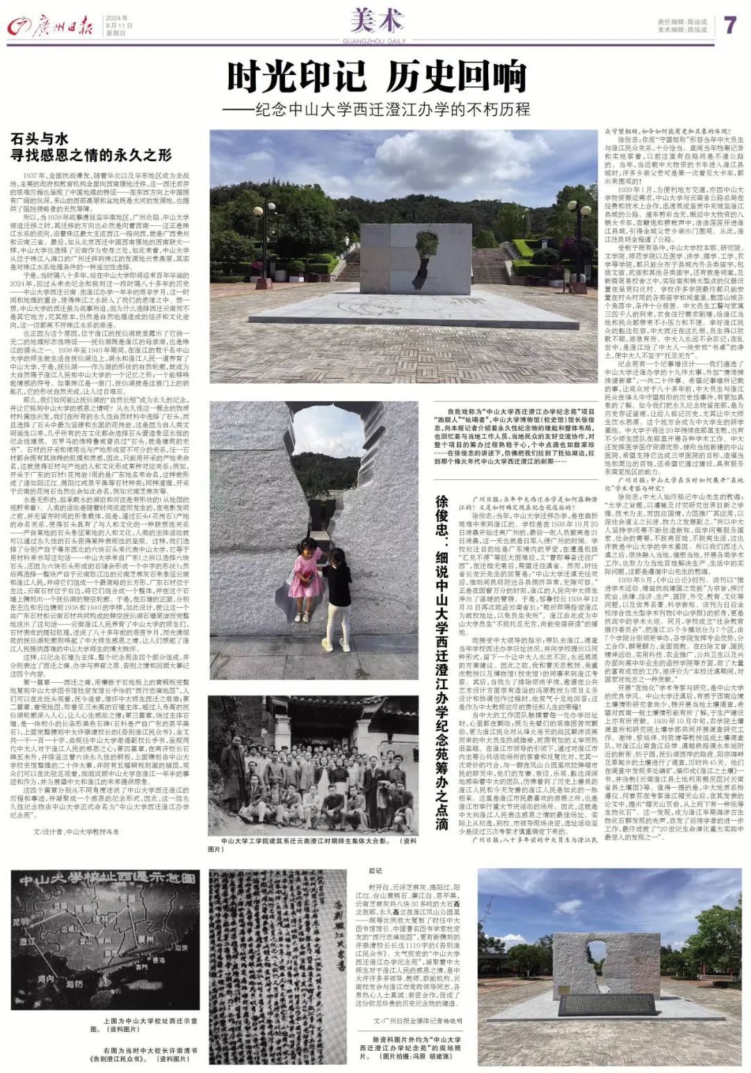 2024年8月,广州日报刊载了由我系主任冯原教授携手中山大学徐俊忠教授撰写的纪念文章《时光印记,历史回响——纪念中山大学西迁澄江办学的不朽历程》。我系主任冯原教授作为“中山大学西迁澄江办学纪念苑”设计者...